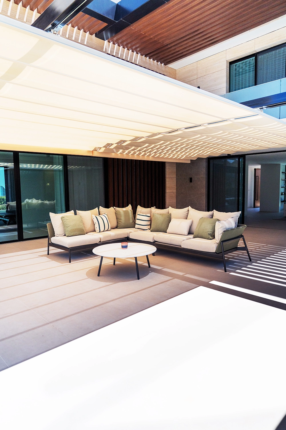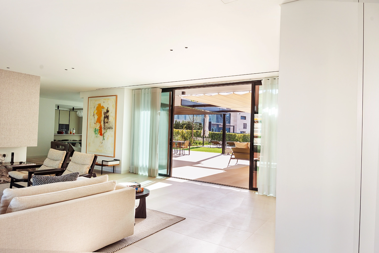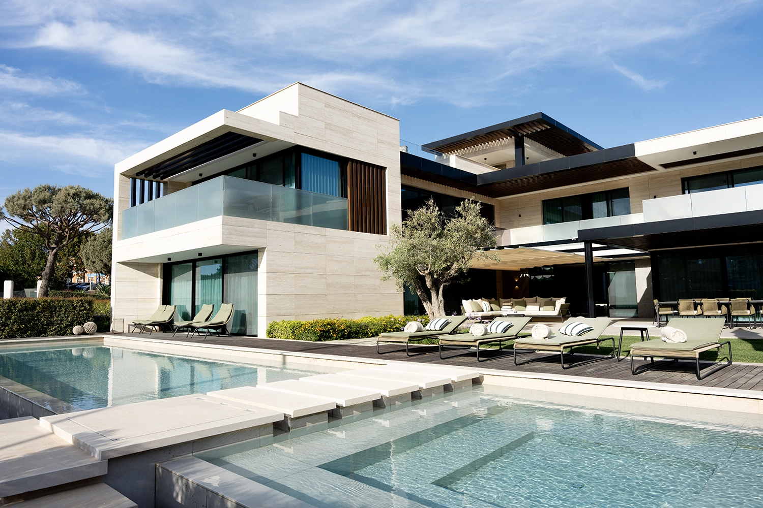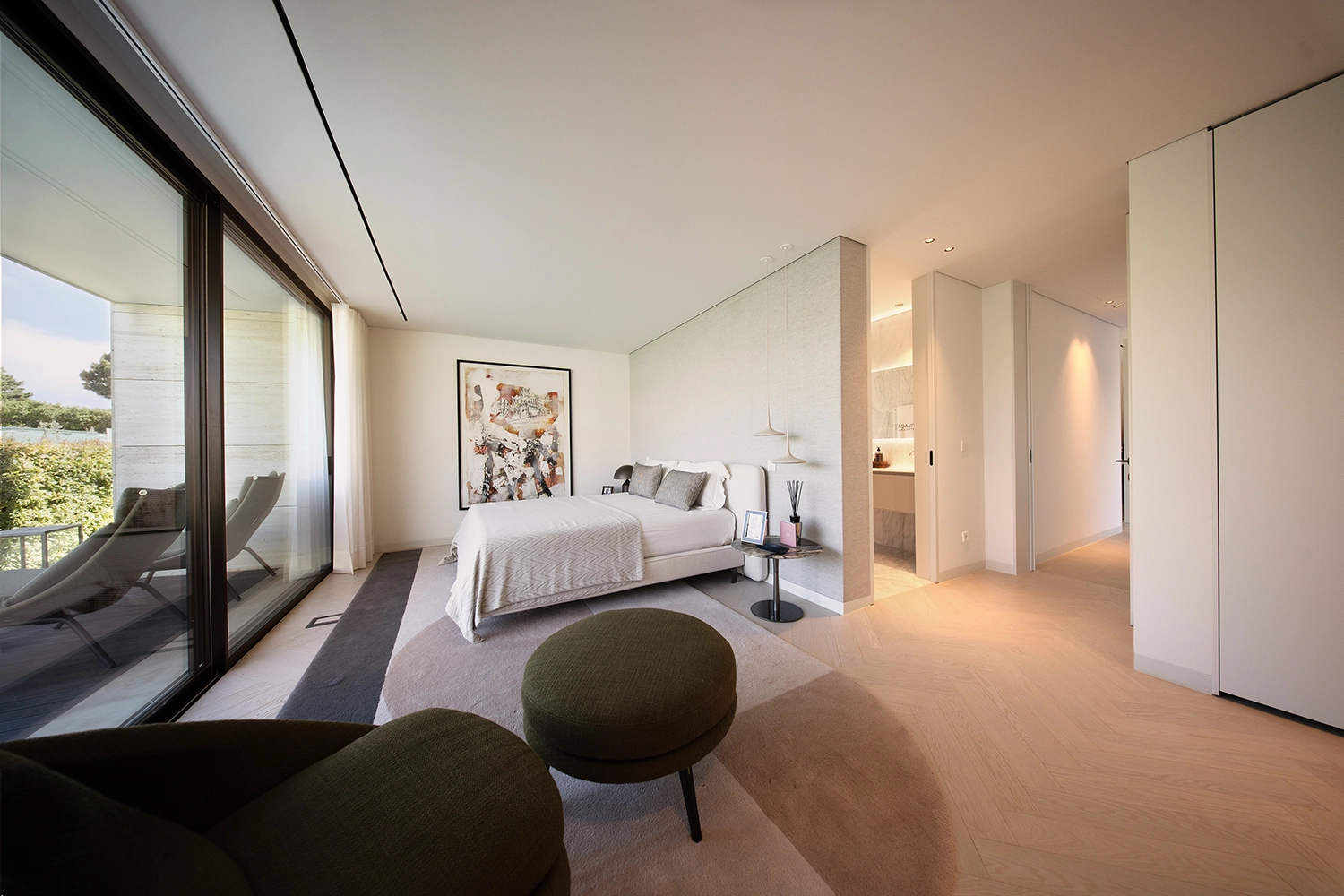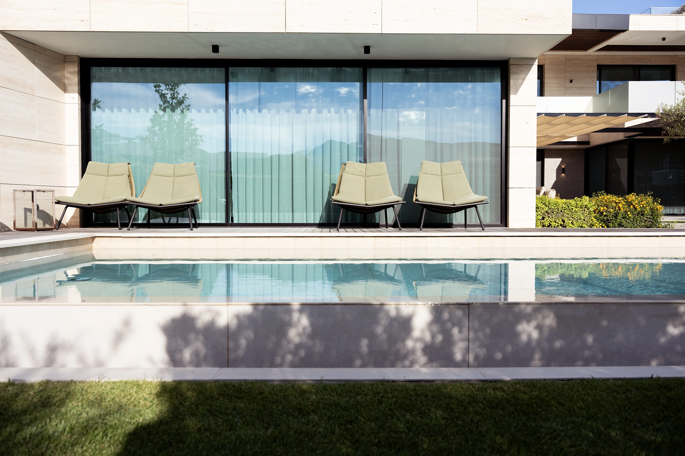 The extensive interiors are excellently outfitted, with private lifts and cinema rooms, providing a welcoming space for family and friends. Plan Architects deep understanding of the region, made them maximize the sun and the views over the golf course, Natural Park, and lake.